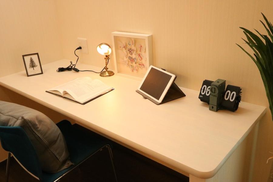 ちょっとした勉強スペースをリビングに配置する事で、そこは家族共有のデスクとなります。