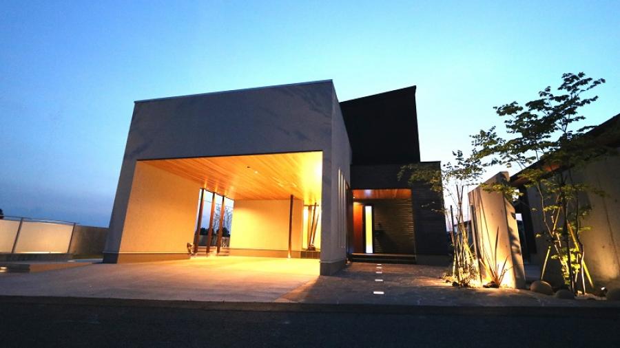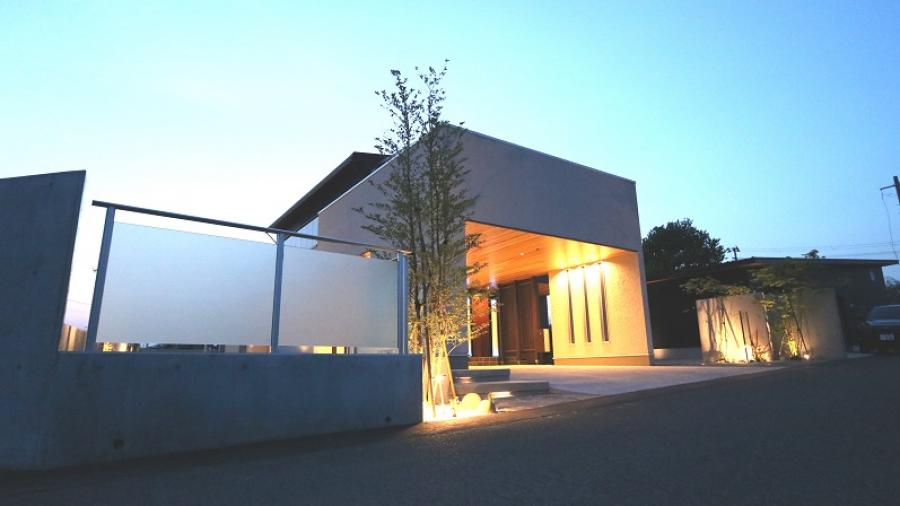 夕暮れ時から外構と共にライトアップされると、日中とは違った表情を楽しむ事ができます。