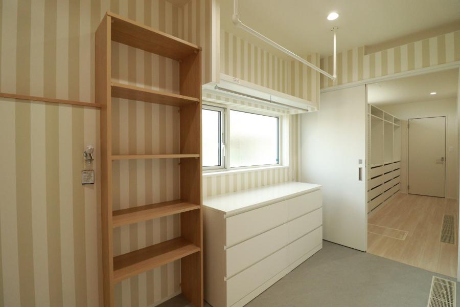 脱衣所兼サンルームとファミリークロークを隣接させることで家事楽動線としました。