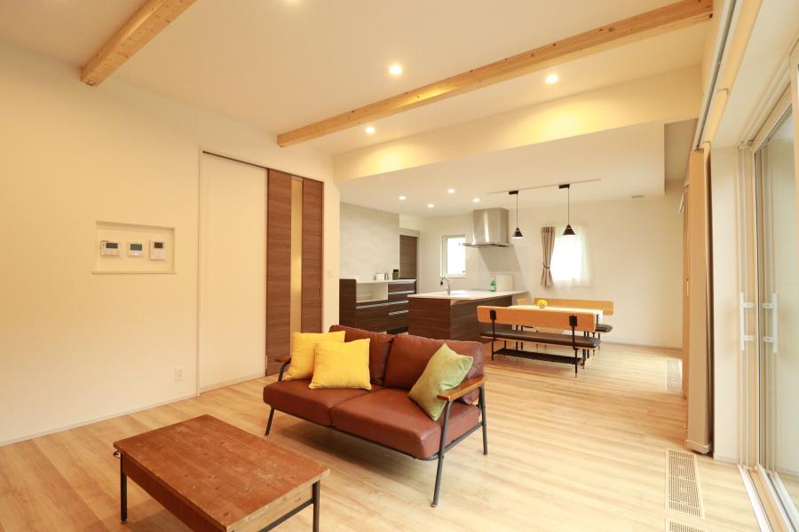 21帖の広々としたLDKは高天井にする事で実坪数以上の開放感を演出します。